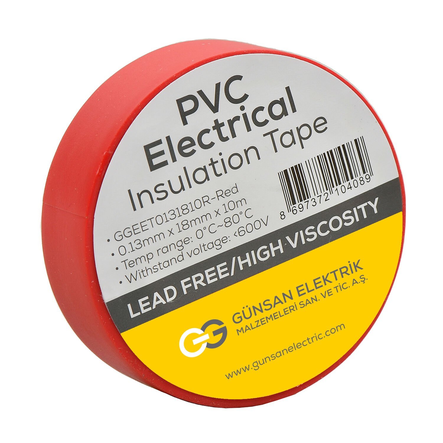 Günsan Valta Elekrik İzolasyon Bandı Kırmızı 0,13mmX18mmX10m